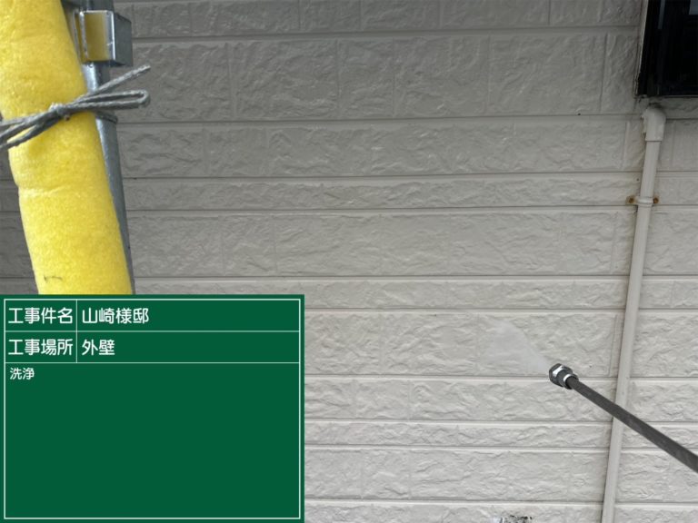 現在施工させて頂いている外壁塗装工事において高圧洗浄をさせて頂いております。