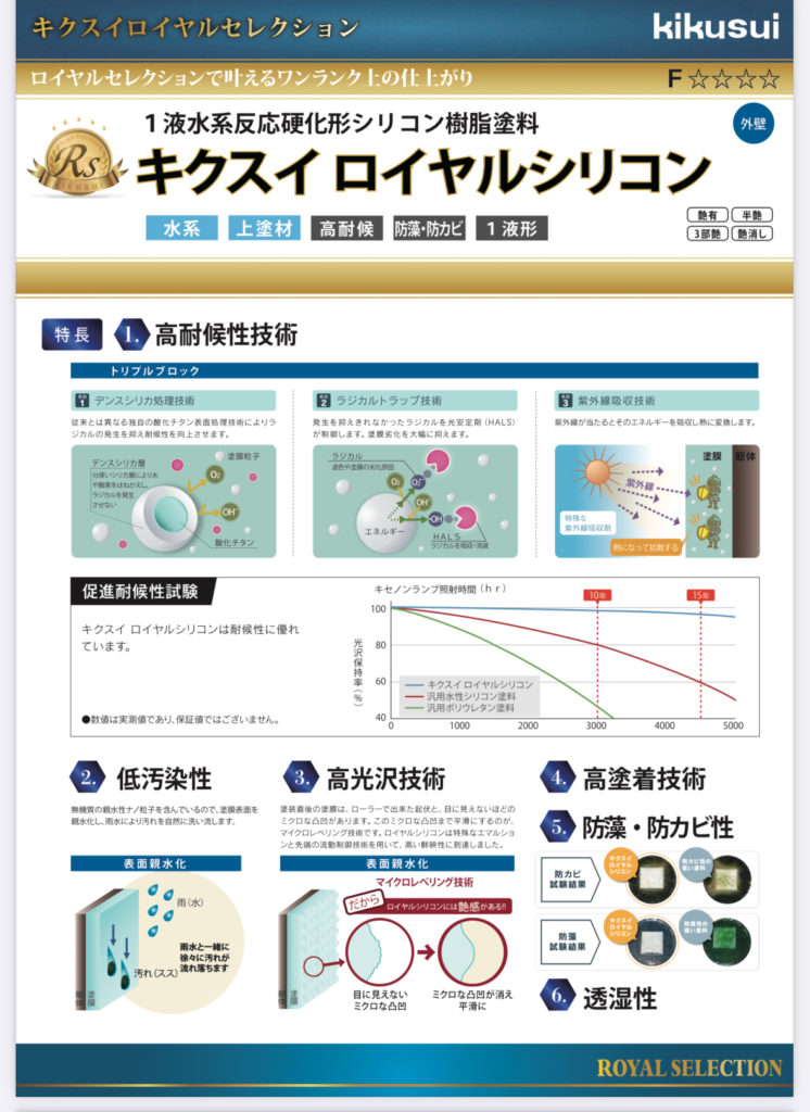 菊水化学の塗料は、菊水科学独自の<トリプルブロック>と呼ばれる3つの技術を組み合わせた最強の耐候性技術で、塗膜の大敵・紫外線を制します。