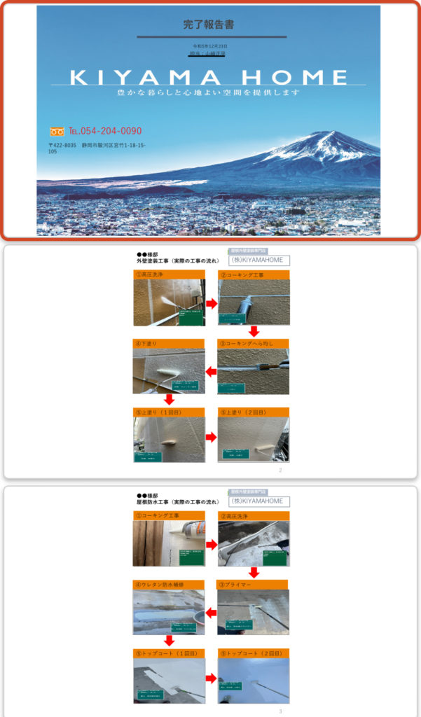 また外壁や屋根には面積が記載されていると思うのですが面積によって必要缶数が分かりますので塗装工事が終わった時点で完了報告書と共に各項目別に缶数がわかる写真の提出をさせていただいております。