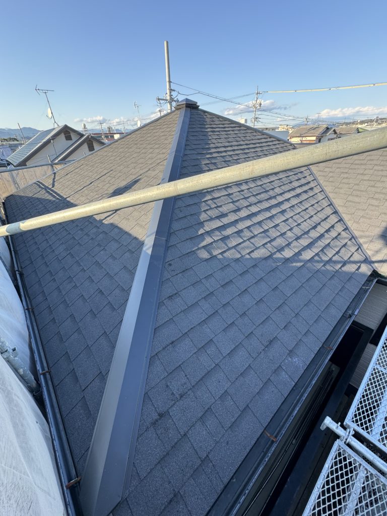 今回は元々の既存の屋根が劣化が酷く、塗装ではカバー出来なかった為シングルアスファルトでのカバー工法を提案させて頂きました。