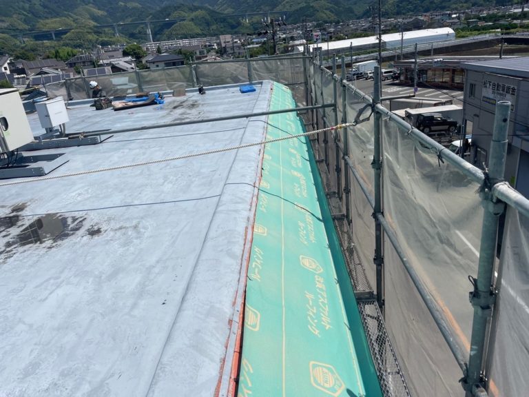 今施工させていただいているビルの屋根の補修工事に立ち会いました。