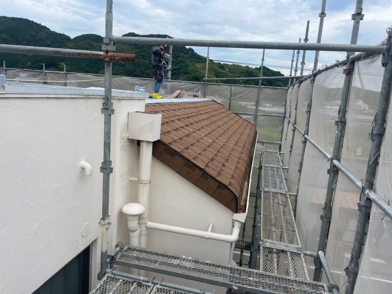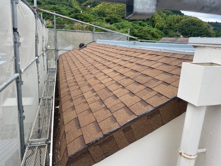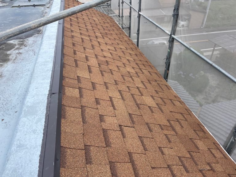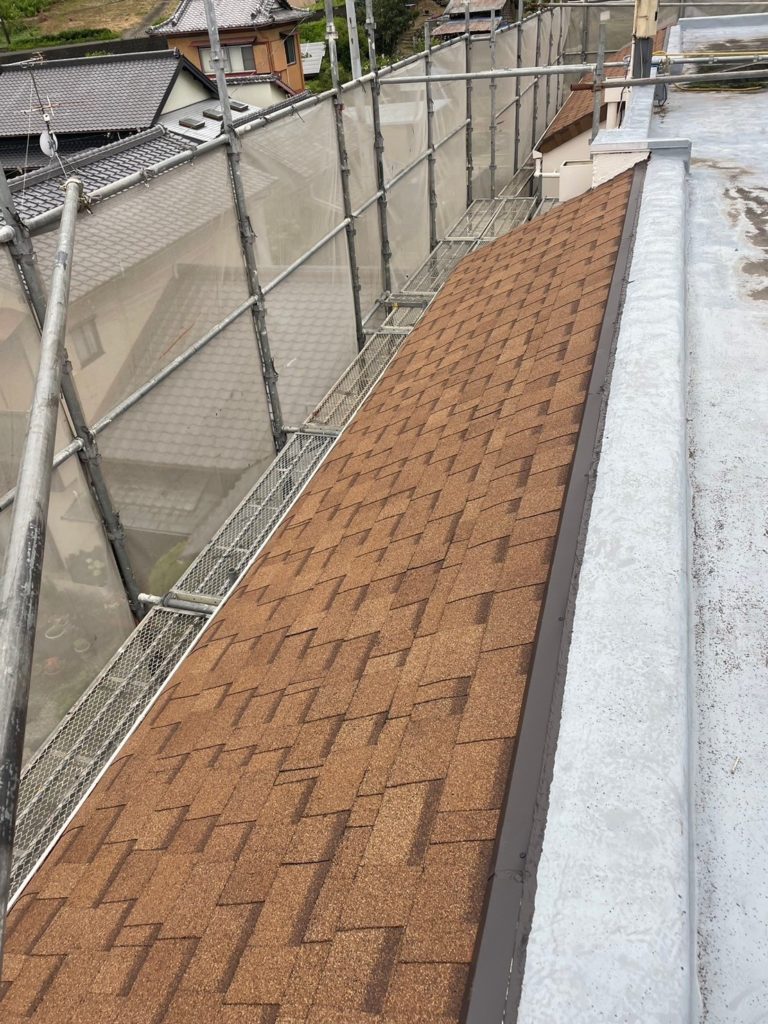 既存のシングル屋根にカバー工法での施工でアスファルトシングルの工事の施工をさせていただいております。