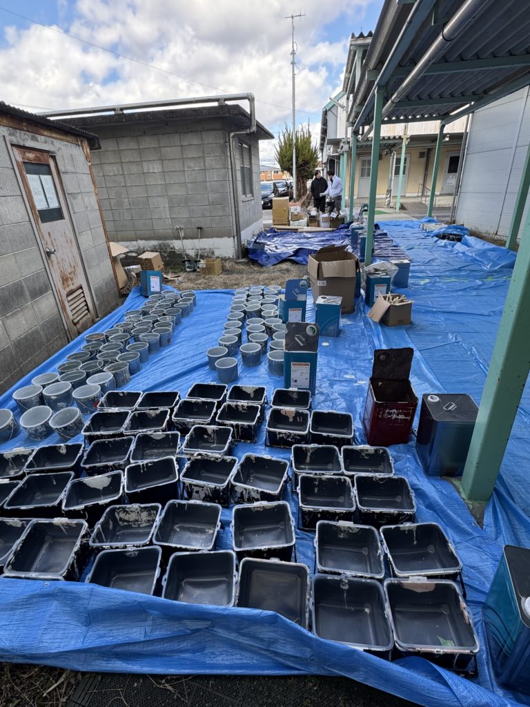 早朝から塗り研メンバー、一同が小学校に集合し作業の準備を開始しました。
