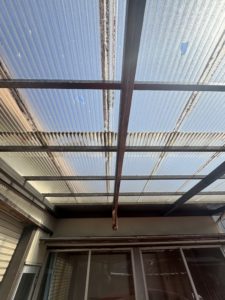 テラス屋根に使用されているポリカーボネート波板に複数箇所の穴が確認されました。